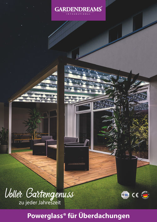 Beleuchten Sie Ihre Terrassenüberdachung oder Ihr Gartenzimmer auf eine innovative Art und kreieren Sie eine einmalige Atmosphäre mit Powerglass® von Gardendreams®. Die eingebauten LED-Lampen werden zwischen zwei Glasplatten platziert, ohne dass Drähte zu erkennen sind. Dadurch wirkt es, als ob die LED-Beleuchtung im Glas schwebt und man seinen eigenen Sternenhimmel hat!